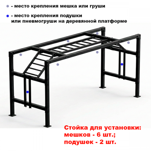 Стойка для боксерских мешков профессиональная №3 с рукоходом (на 6 мешков, 2 подушки) (Ш:Д:В): 2,0:5,5:2,8 м.